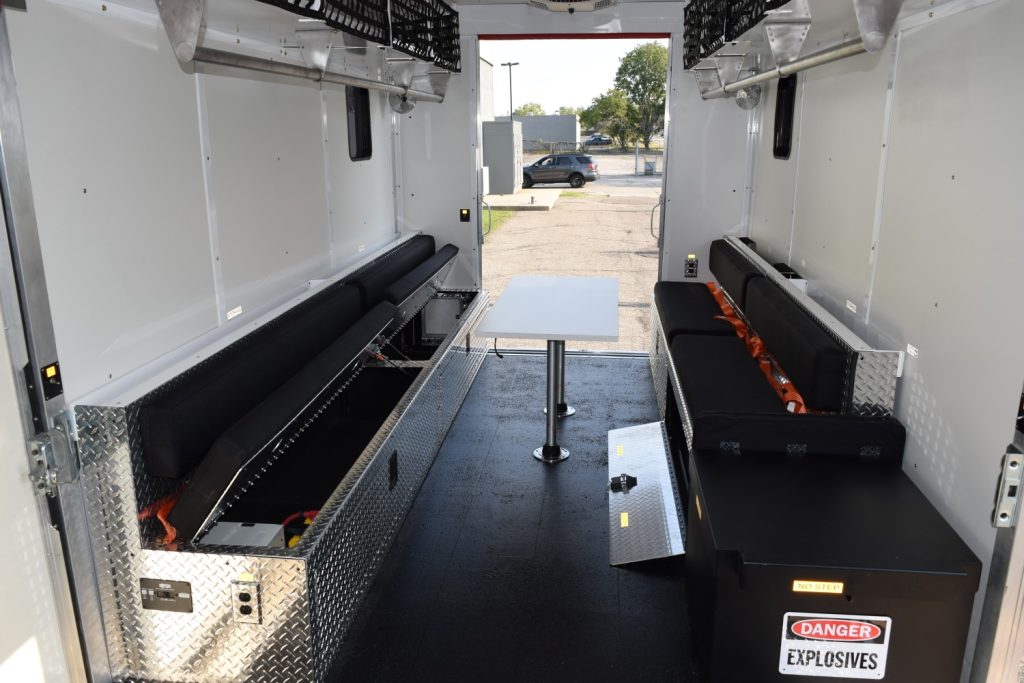 TAG’s RDV (Rapid Deployment Vehicle) can be one of the most essential investments of any law enforcement department. SWAT, SRT, ERT, Narcotics, and Gang Task forces, among others, use our RDV units all over the USA. When you need a vehicle deploy members rapidly, safely, and sometimes discreetly in an emergency, the TAG RDV is unmatched in the industry. Being able to accommodate a team of 12-16 fully geared members comfortably, the RDV is one of the most highly functional, versatile, and affordable law enforcement vehicles available in the market. RDV’s can load large numbers of fully kitted officers in the RDV, due to the ceilings allowing adequate height for officers to stand when staging and sufficient padded bench seating. TAG offers 14-foot, 16-foot, and 22-foot vehicle bodies to accommodate any size team. TAG offers the flexibility to build on Ford, Chevrolet, Dodge or just about any manufacturers chassis to keep your fleet the same.